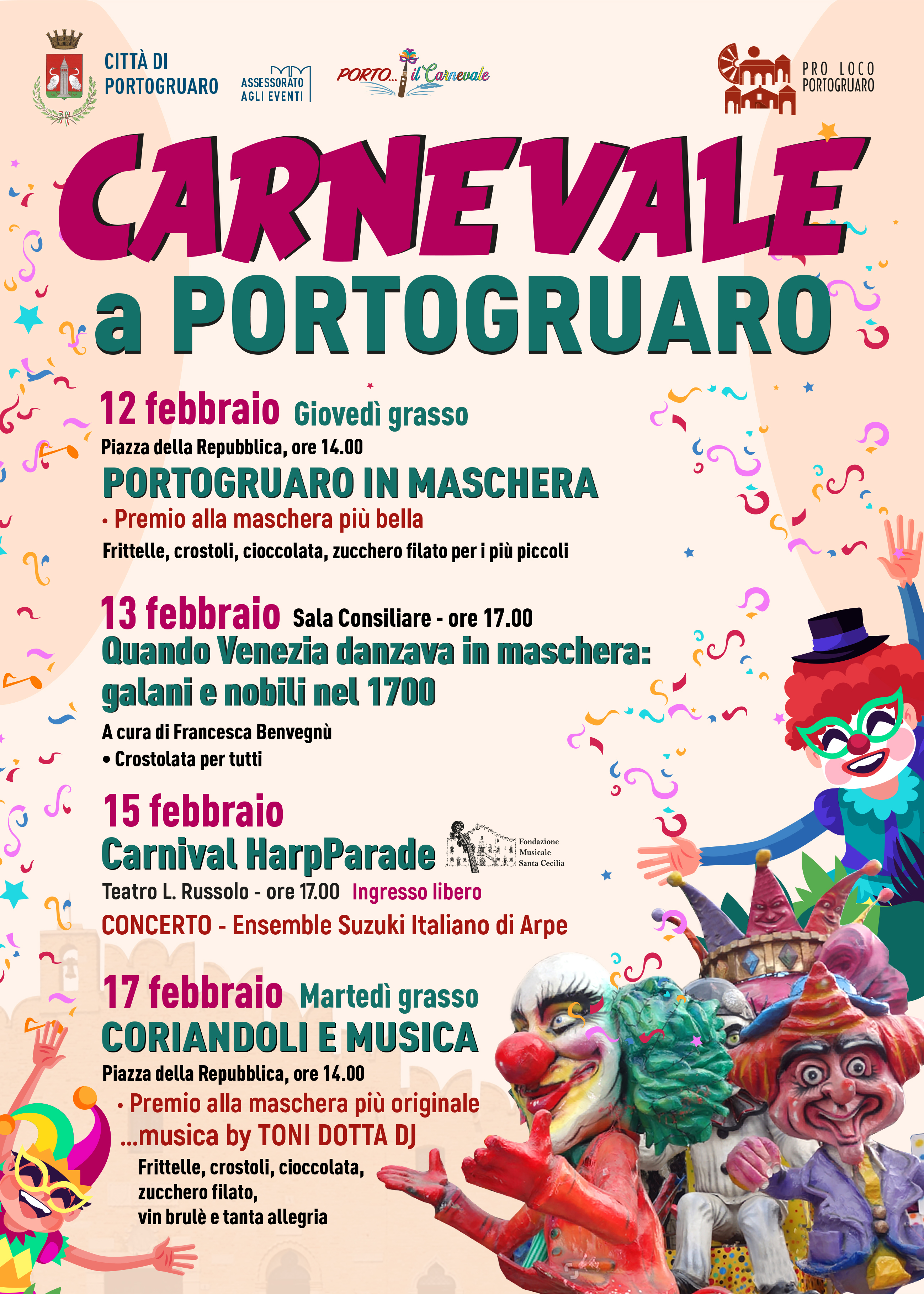 Venerdì 13 febbraio 2026, alle ore 17.00, presso la Sala Consiliare, si terrà l’incontro Quando Venezia danzava in maschera: galani e nobili nel ’700.