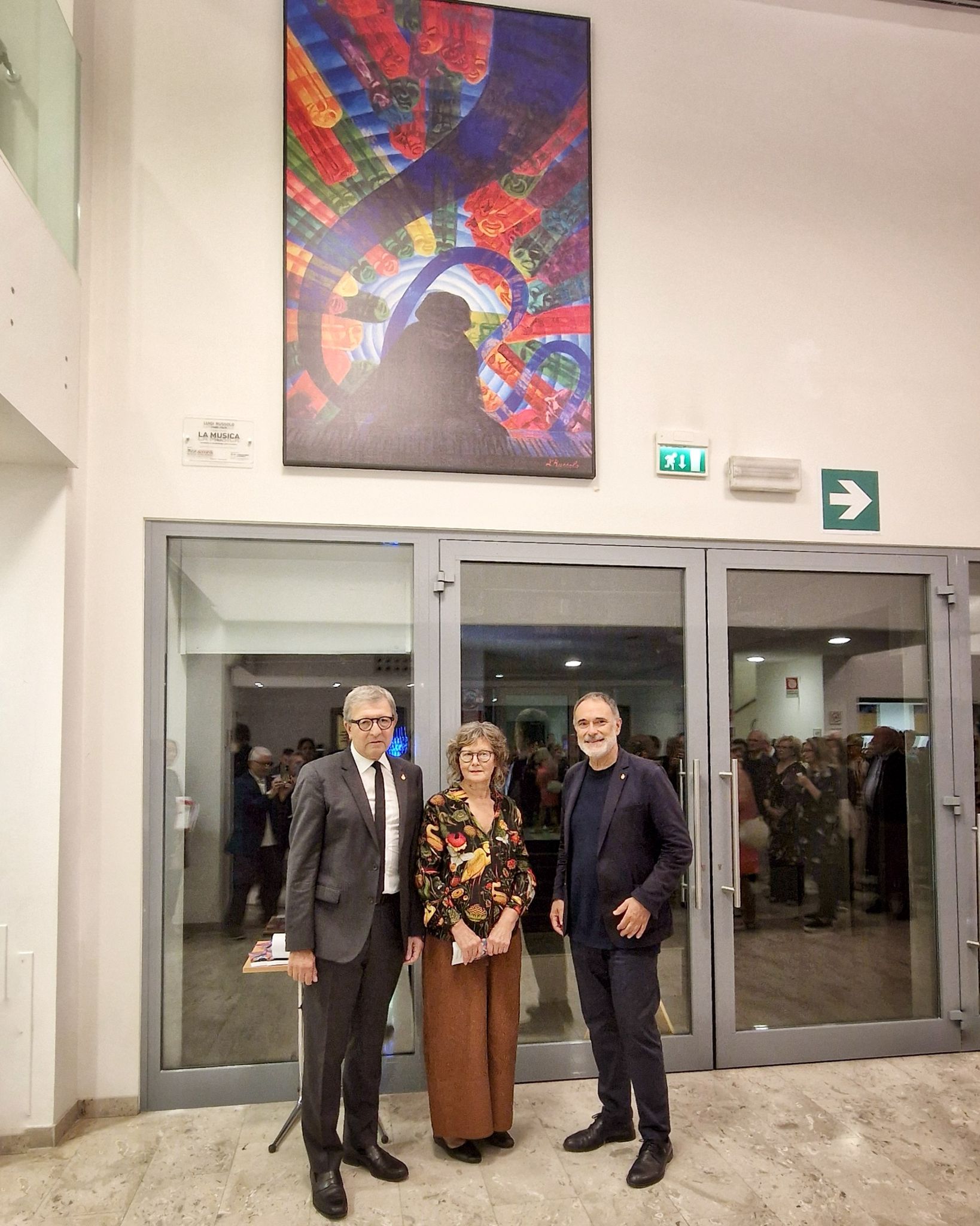 Il dipinto “La Musica” di Luigi Russolo è una delle opere più famose del celebre artista e l'unica davanti alla quale il noto futurista, nato a Portogruaro, si è fatto fotografare. Ora una copia del quadro, attualmente conservata alla Estorick Collection of Modern Italian Art di Londra, trova spazio nel foyer del teatro di Portogruaro, struttura che porta il nome del suo illustre concittadino. A donarla al Comune è l'Associazione Accordi, realtà locale che da anni è attiva nella promozione sociale e culturale. Ieri sera, in un'apposita cerimonia che ha anticipato il concerto “Futur...issimo”, in programma nel cartellone del Festival Internazionale di Musica, il sindaco di Portogruaro Luigi Toffolo (il cui bisnonno era cugino proprio di Luigi Russolo) ha scoperto il dipinto in rappresentanza della città.