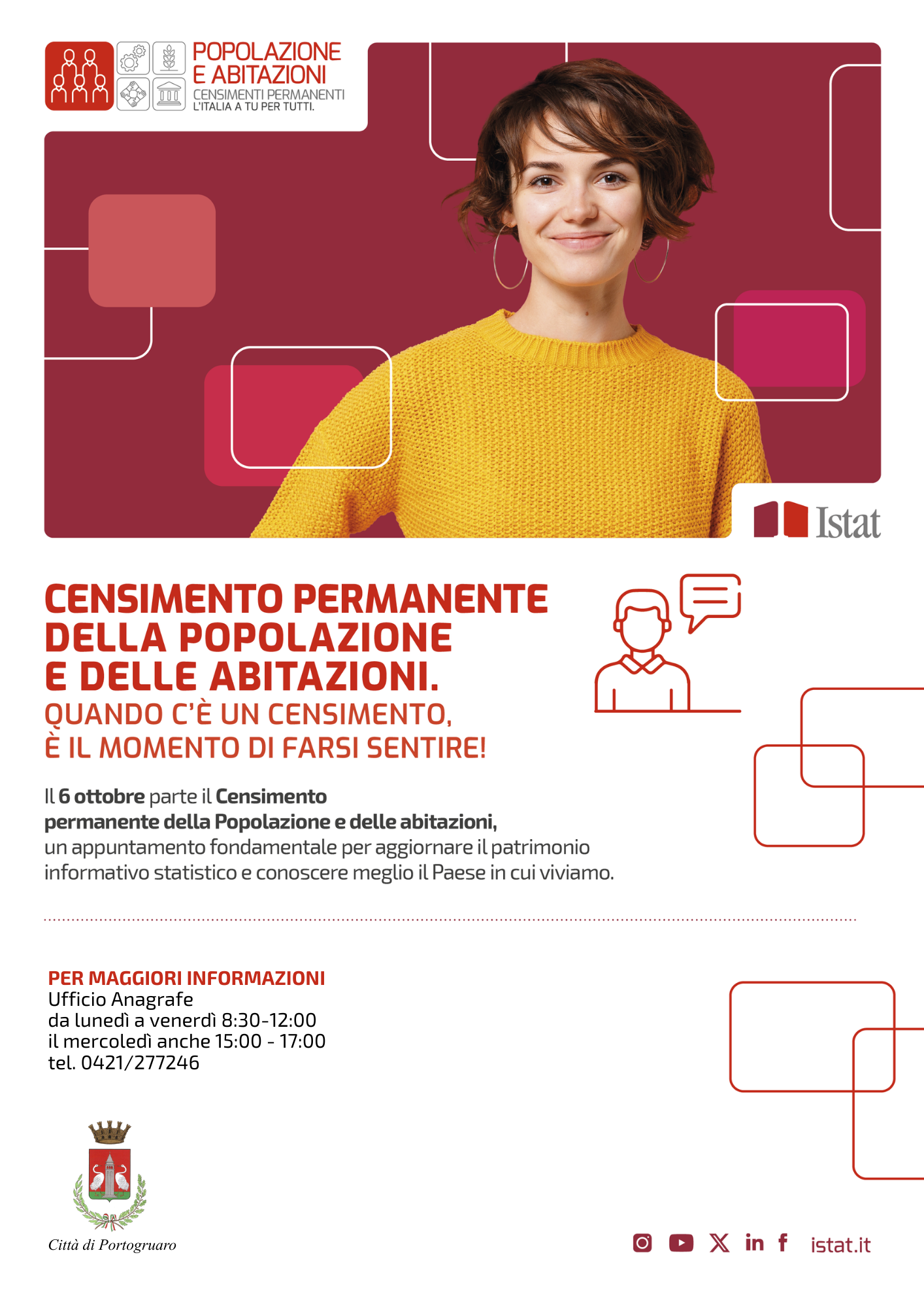 Dal 6 ottobre al 23 dicembre 2025 si svolge anche nel Comune di Portogruaro il Censimento permanente della Popolazione e delle abitazioni, promosso dall’Istat.